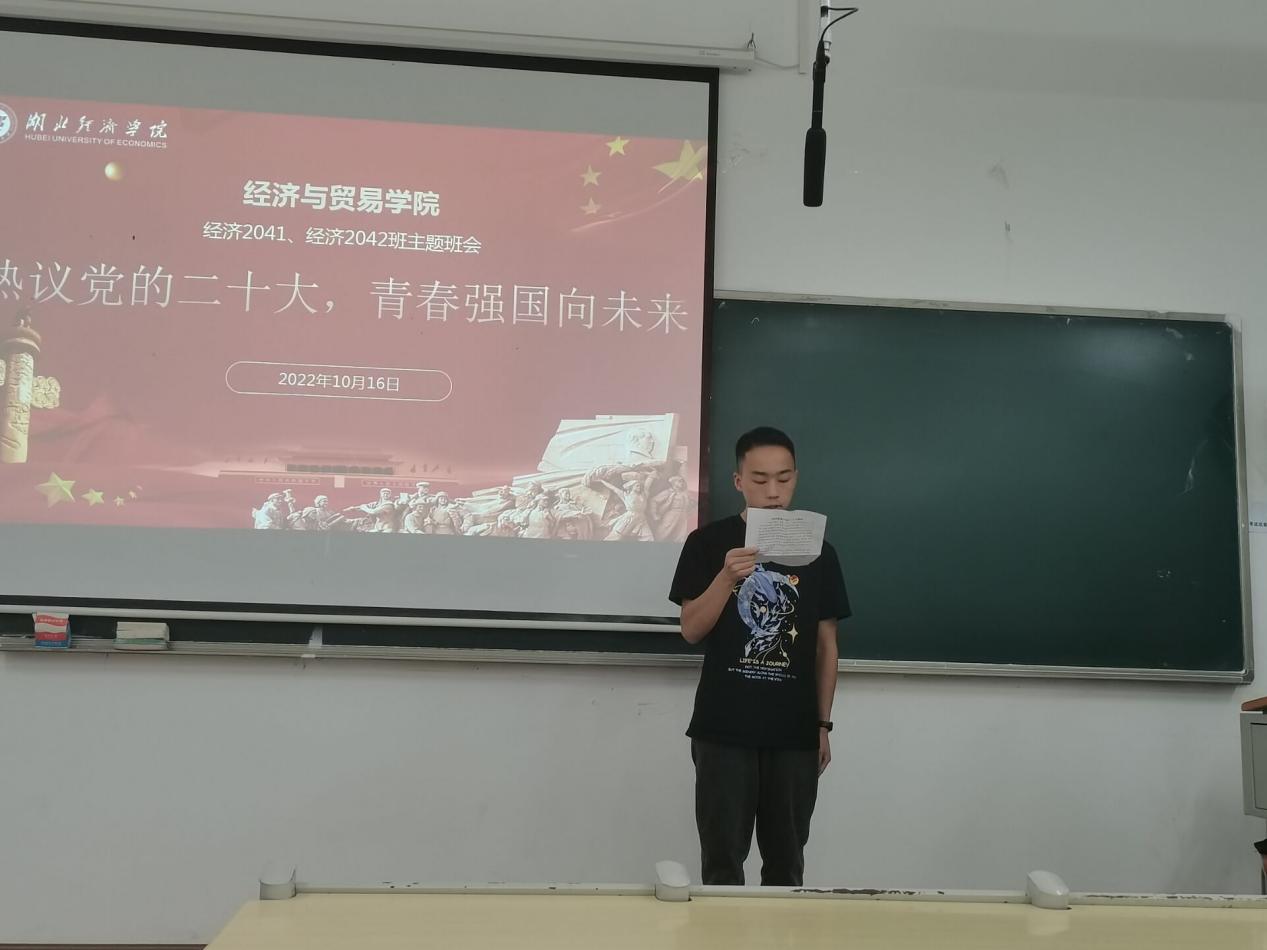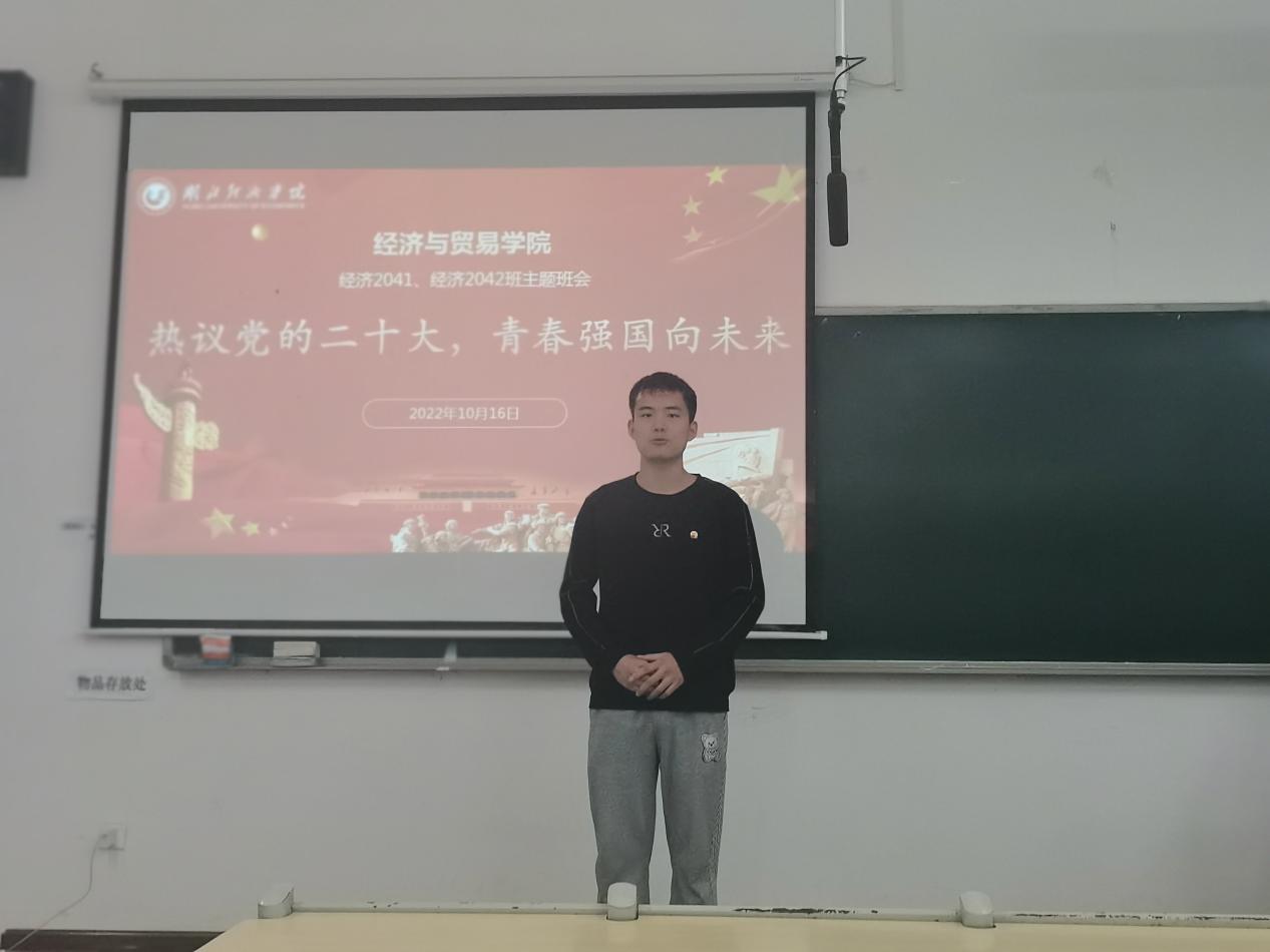 (通讯员:邓晓蓉 黄超 孙悦悦)为学习好、宣传好、贯彻好党的二十大精神,在班主任祝琴老师的倡导下,betway唯一官网必威中文官网电话查询经济2041班与经济2042班同学分别在学校食堂、图书馆、教室、寝室等场所,观看党的二十大开幕会,并于10月16日下午5点在学校教2-111教室召集班上同学开展“热议党的二十大 青春强国向未来”主题班会活动。祝琴要求同学们以经济学专业视角来学习党的二十大精神,用专业知识领悟党的二十大报告。主题班会上,同学们积极踊跃发言,纷纷表示党的二十大精神振奋人心。