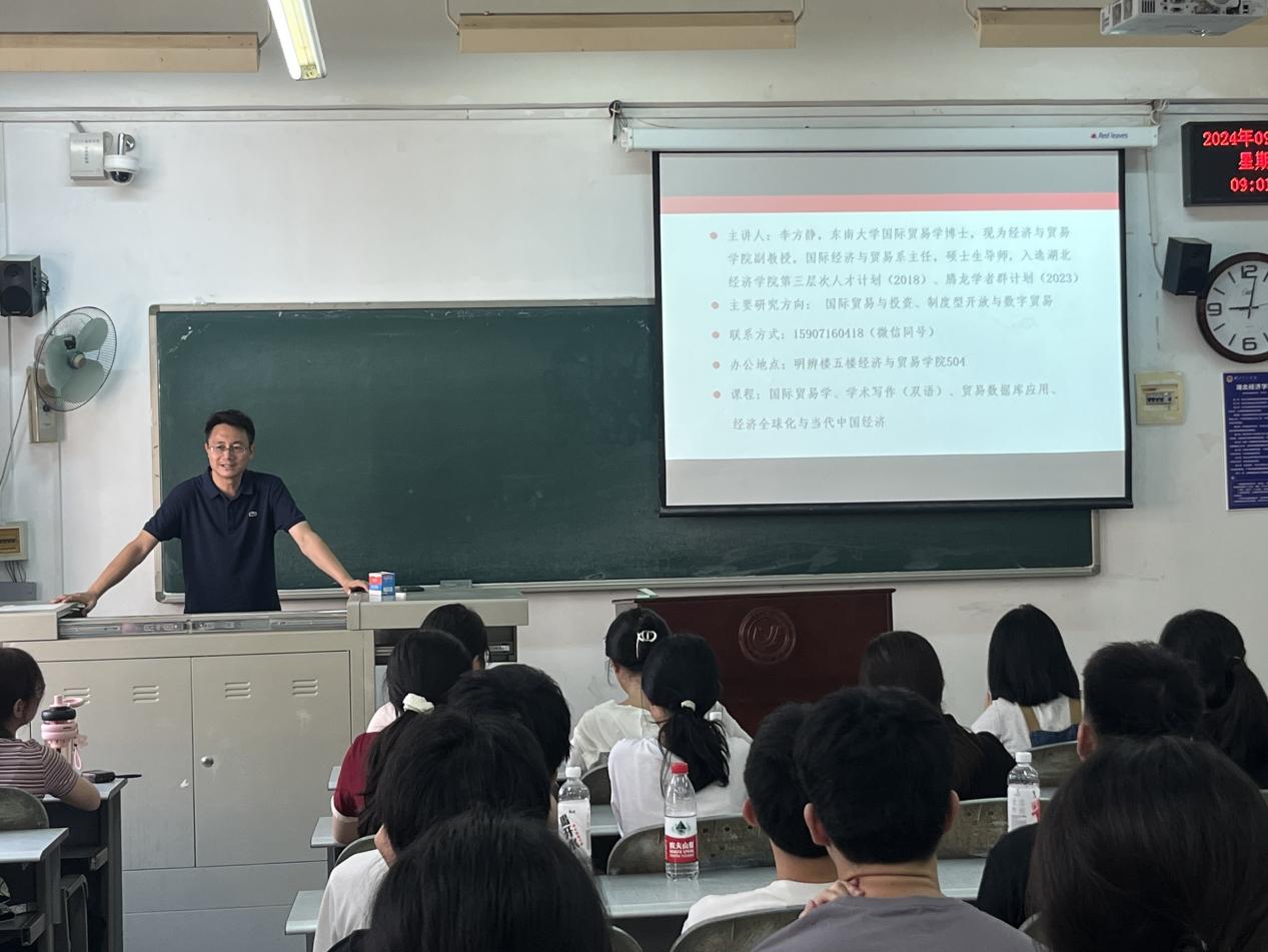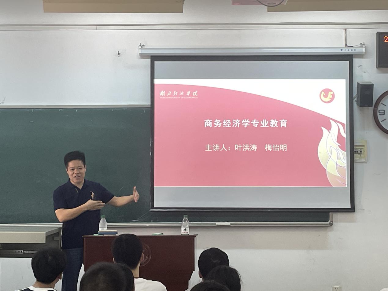 商务经济学系系主任叶洪涛老师用幽默风趣的语言讲解了本专业的学习内容及人才培养方案,并深入介绍了我校商务经济学的学科建设条件与资源。他鼓励新生们积极参与第二课堂活动,在提升学习能力的同时拓展实践本领。