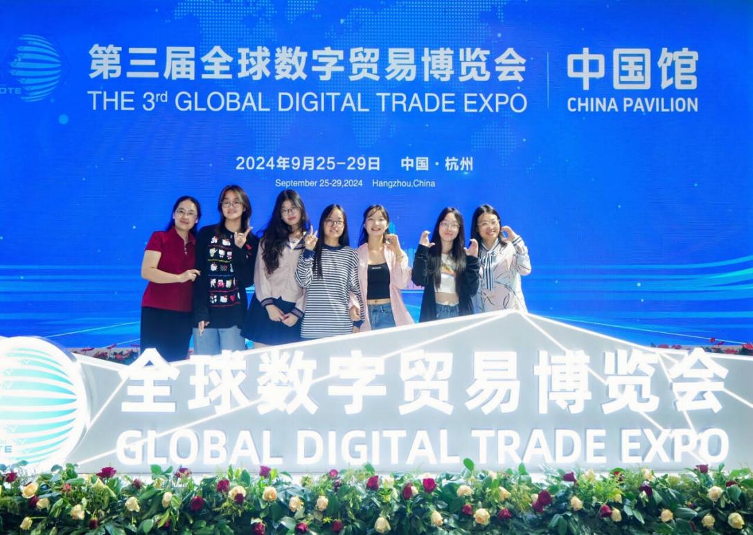 比赛同期,大赛组委会更是精心组织策划,与第三届全球数字贸易博览会同步举办跨境电商企业对接会和“丝路电商日:千名大学生共享数贸会”逛展打卡活动,将人工智能、大数据融入数字贸易大赛这一引擎,推动新一轮科技革命、学科交叉融合发展与自主知识体系构建,实现了教育、科技、人才一体部署。参赛同学怀着激动的心情参观了本届数字贸易博览会,在这场数字贸易的盛宴中,大家大开眼界,汲取着前沿的行业知识和创新理念。