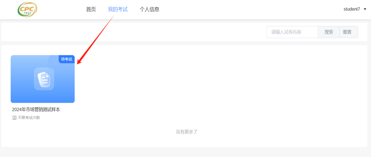 考生点击导航栏中“我的考试”,完成试卷作答。