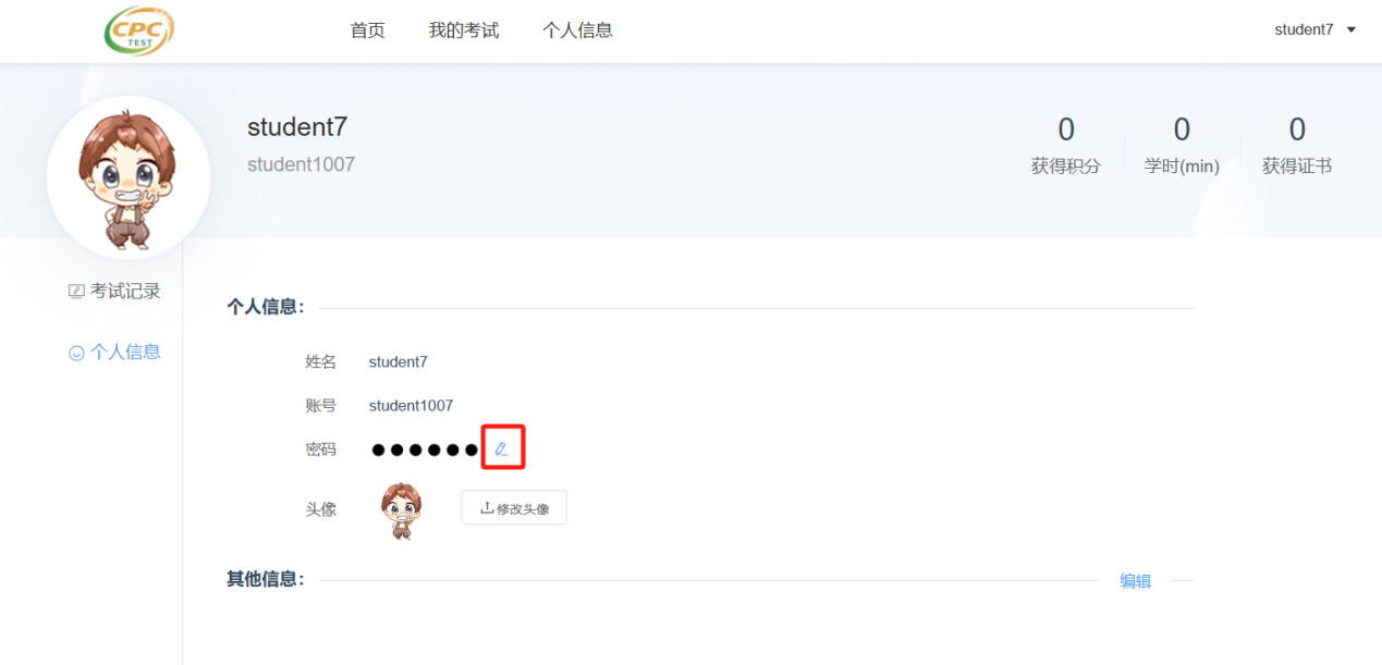 初始密码:123456(测试结束后考生可再次登录该系统修改个人密码)。