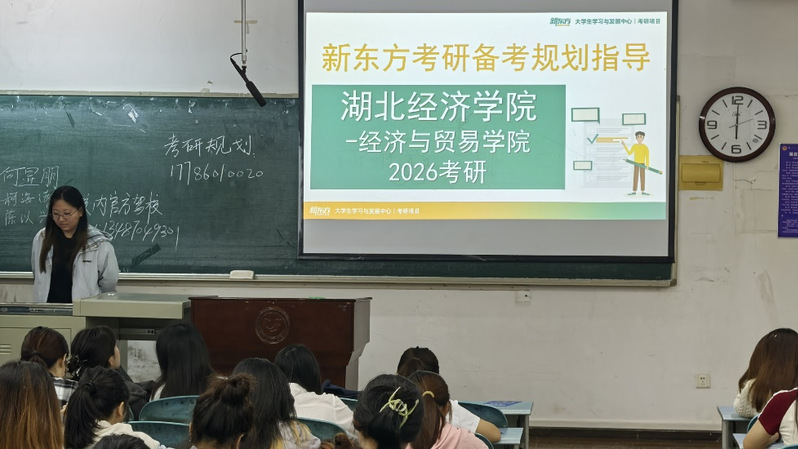 本网讯(通讯员左寅生商鑫)为进一步提升我院学生的考研能力,明确备考方向,增强考研信心,10月20日,我院2022级商务经济学系利用晚讲评时间于J1-105开展考研备考规划专题讲座,本次讲座邀请到新东方名师朱勃霖老师主讲。