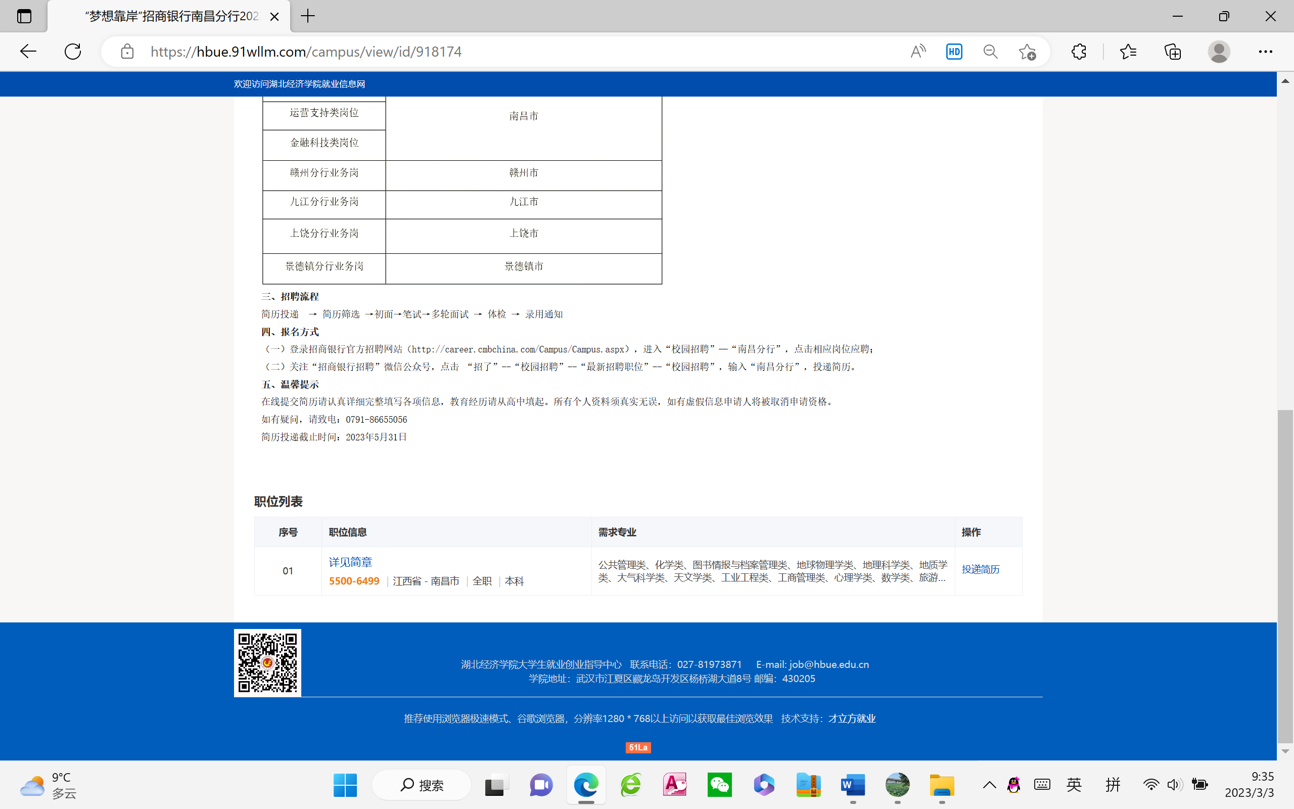 招商银行股份有限公司南昌分行招聘信息