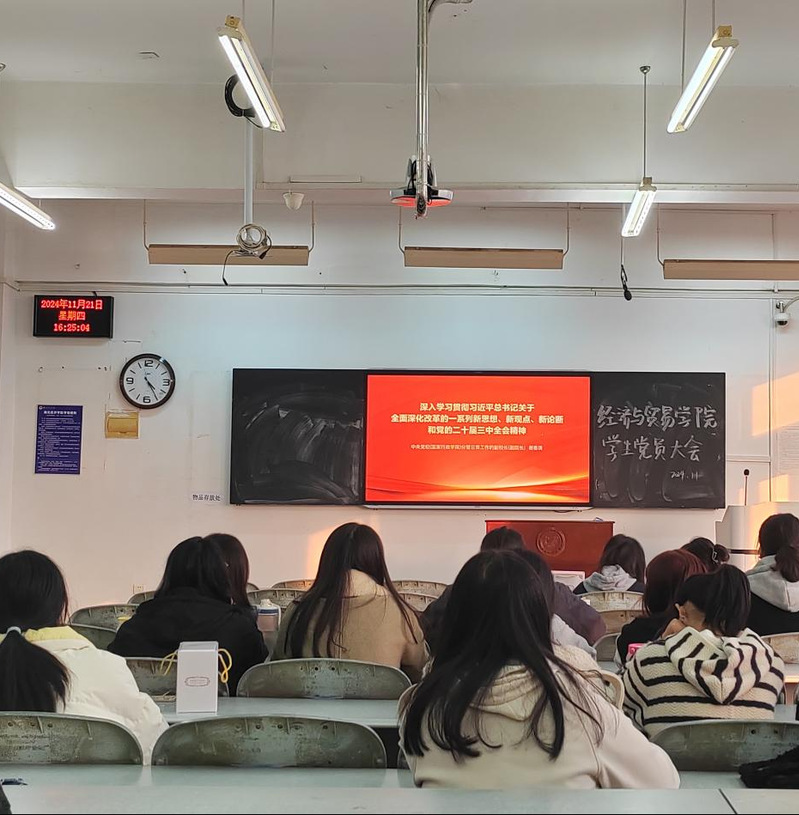 随后,全体学生党员观看了学习贯彻党的二十届三中全会精神培训视频并进行了深入思考,深刻认识到了全面深化改革的紧迫性和必要性,增强了改革意识,更加坚定了推动改革的决心。