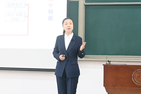 王琼老师的参赛课程是宏观经济学。其从学情特征、学科特性和时代要求三个方面总结出该课程的思政目标主线是“经世济民”,并进一步细分为四大思政主题。该课程聚焦中国元素来挖掘思政资源,借助教学创新来实现思政元素的隐性融入。在授课环节,王琼老师展示了“失业及其类型”这个知识点在教学中是如何实现思政融入的。其通过讲授我国失业率统计指标的科学调整,来使学生认识到中国特色劳动经济理论的不断完善。通过周期性失业、结构性失业的案例研讨,使学生感知中国政府促进就业的积极努力和取得的成效,坚定“四个自信”;同时也使其感悟到当前形势和未来人工智能发展下所面临的就业压力,激励其努力学习,成长为复合型、创新型人才。通过课前课中课后的多环节教学活动使学生形成自主学习意识和团队协作的职业品格。