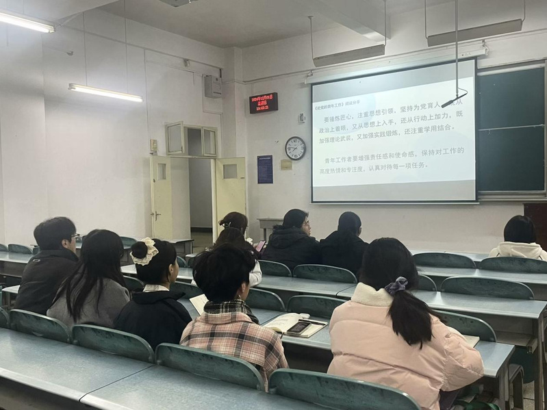 本次活动选取了《论党的青年工作》和《习近平与大学生朋友们》两本极具思想引领意义的书籍。在第一期活动中,院团委副书记崔子菡率先领学了《论党的青年工作》的精髓,阐明了党对青年的殷切期望。院团委组织部负责人熊一鸣在交流环节探讨了如何将书中理论应用于日常学习与生活。
