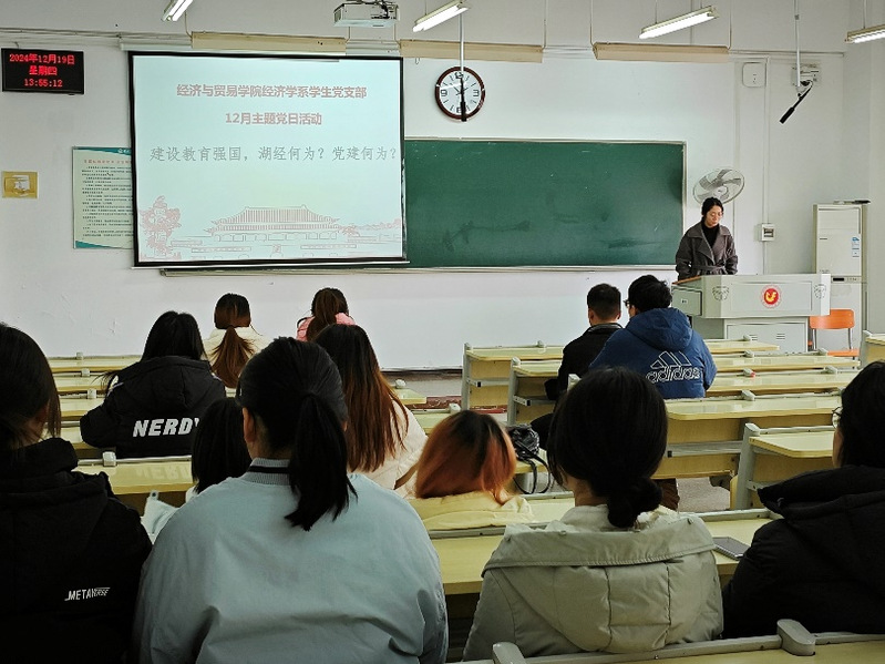 本网讯(通讯员魏墁)2024年12月19日下午,必威中文官网电话查询经济学系学生党支部在J2-316开展了12月主题党日活动,活动主题为“建设教育强国,湖经何为?党建何为? ”,会议由经济学系学生党支部书记陈雪颖主持经济学系学生党支部全体党员参加。