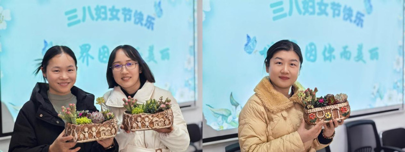 为庆祝第115个“三八”国际劳动妇女节,弘扬绿色环保理念,丰富女教职工文化生活,3月6日下午,学院工会在在503会议室组织了“巧手植绿意·巾帼绽芳华”主题绿植栽培活动,二十余名女教职工积极参与。学院党委书记蒋琼、工会主席丁升到场为女教职工送上节日祝福,共同体验春日植趣。