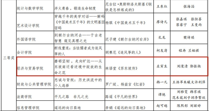 4月17日,第二届“浩然杯”读书演讲大赛在betway唯一官网图书馆一楼报告厅成功举办,我院作品《磨砺坚韧,走向旷达——从东坡南迁看逆境中绽放的生命之花》获三等奖。
