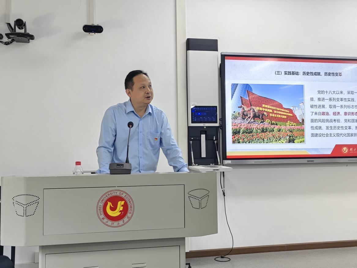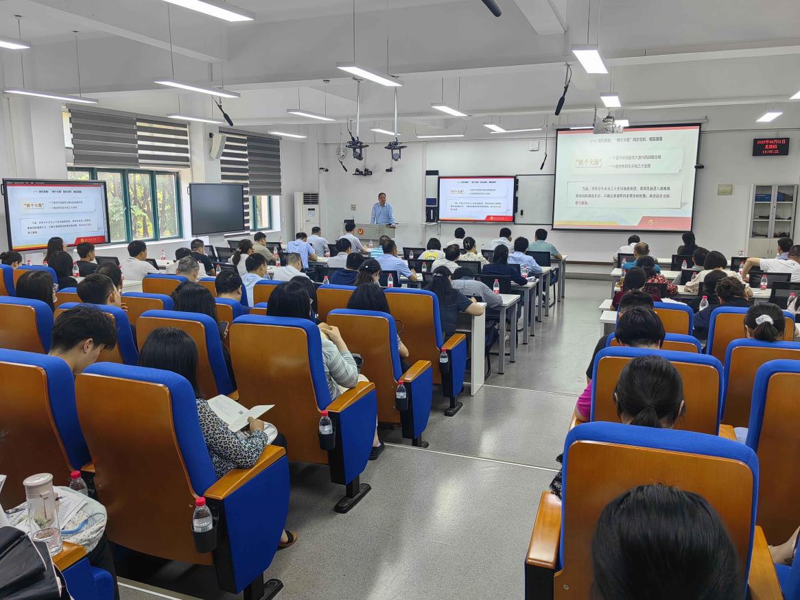 根据学校学习贯彻习近平新时代中国特色社会主义思想主题教育工作安排,6月1日下午,校党委常委、副校长付宏以《马克思主义中国化时代化新的飞跃》为题,为党员讲授专题党课。教务处、财务处、审计处(采招办)、国际交流与合作处、招生办公室、体育场管理中心、必威中文官网电话查询、低碳经济学院、国际教育学院、实验教学中心等单位领导班子、全体教工党员、学生党员代表参加学习。