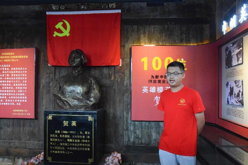 随后,团队前往太平镇的贺英殉难处瞻仰巾帼英雄贺英,近距离感受贺英同志为了革命不惜牺牲自己的崇高精神。在贺英铜像前,所有人鞠躬默哀,缅怀革命先烈。团队学生党员代表张志超同学在现场做了关于“传承红色经典,赓续红色血脉”的主题演讲,他号召新时代的青年应该秉承革命先烈的遗志,从革命先烈的光荣事迹中汲取奋进力量,牢记经院校训,做一个有思想、有能力、有担当,实践、实用、实干的人才,在奋斗中绽放青春之花。
