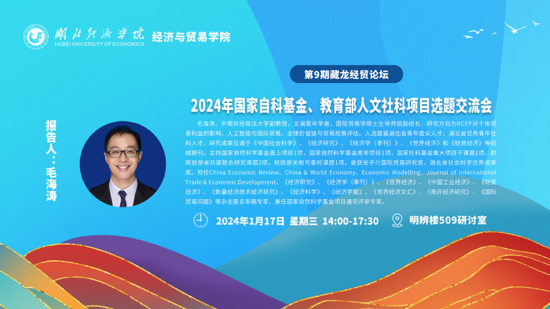 【讲座预告】第9期藏龙经贸论坛:2024年国家自科基金、教育部人文社科项目选题交流会