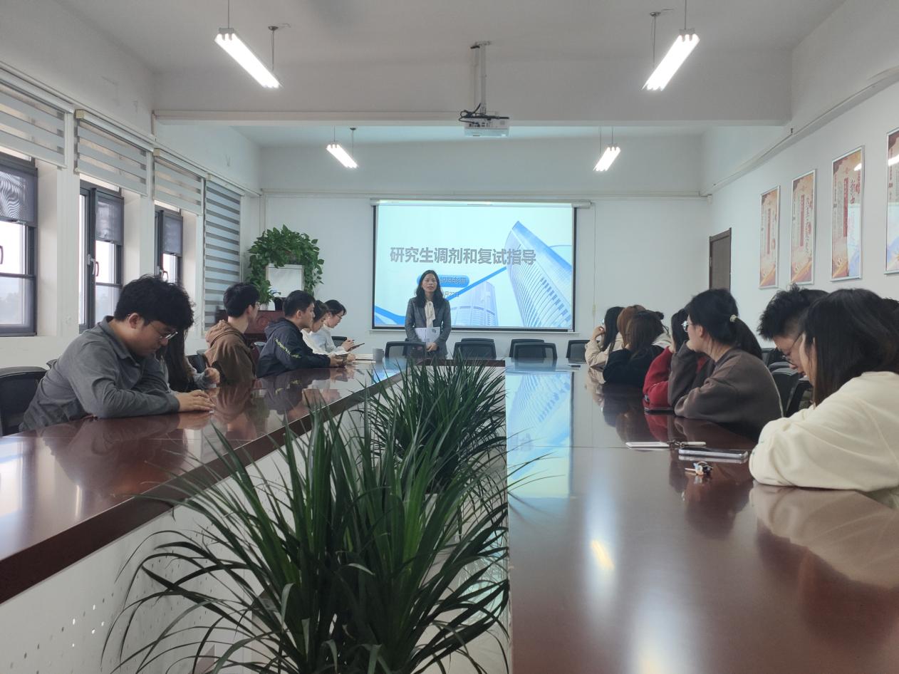 为帮助我院24届考研学生了解复试及调剂相关内容,更有针对性地进行复试准备,我院于3月22日下午在明辨楼503会议室,为通过了考研国家分数线的43名学生进行了专题指导。